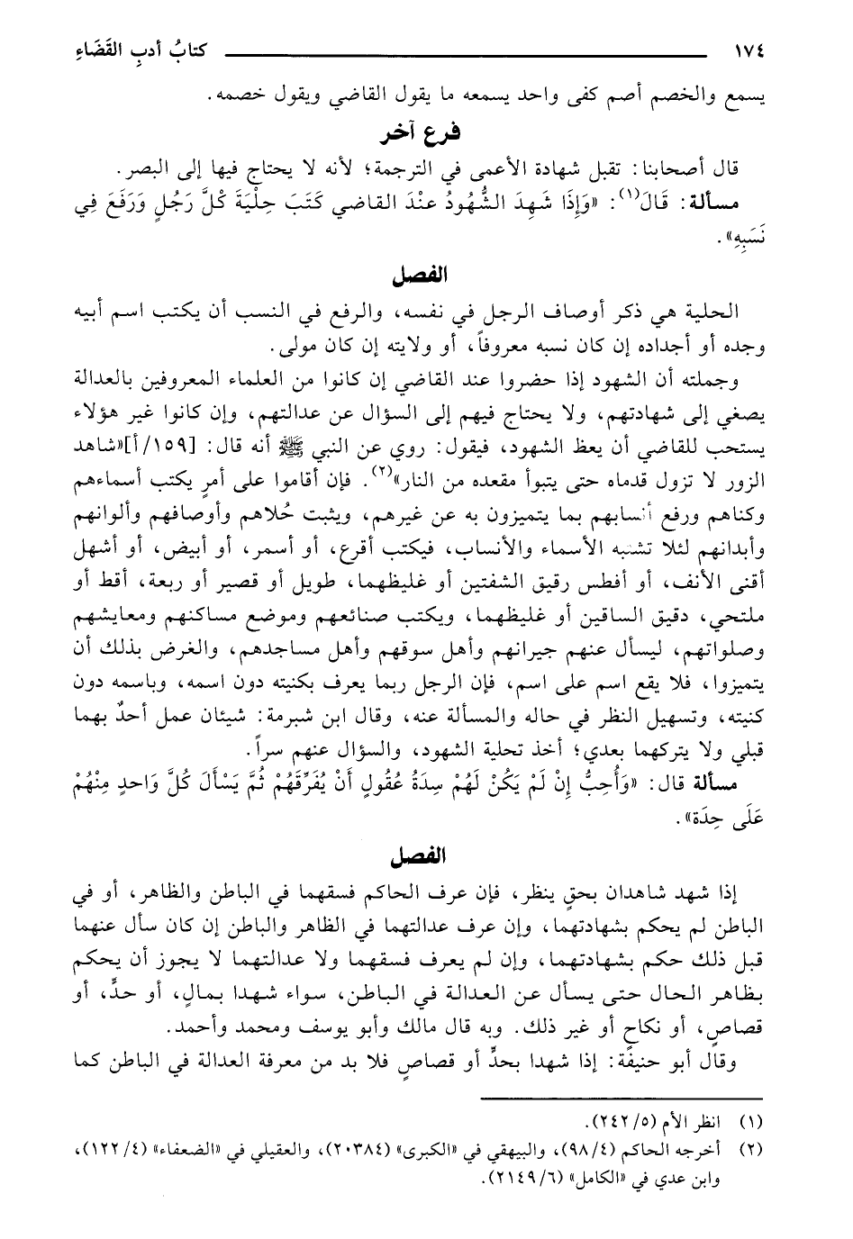 مسألة: قَالَ: "وَإِذَا شَهِدَ الشُهُودُ عنْدَ القاضي كَتَبَ حِلْيَةَ كْلَّ رَجُلٍ وَرَفَعَ فٍي نَسَبِهٍ".