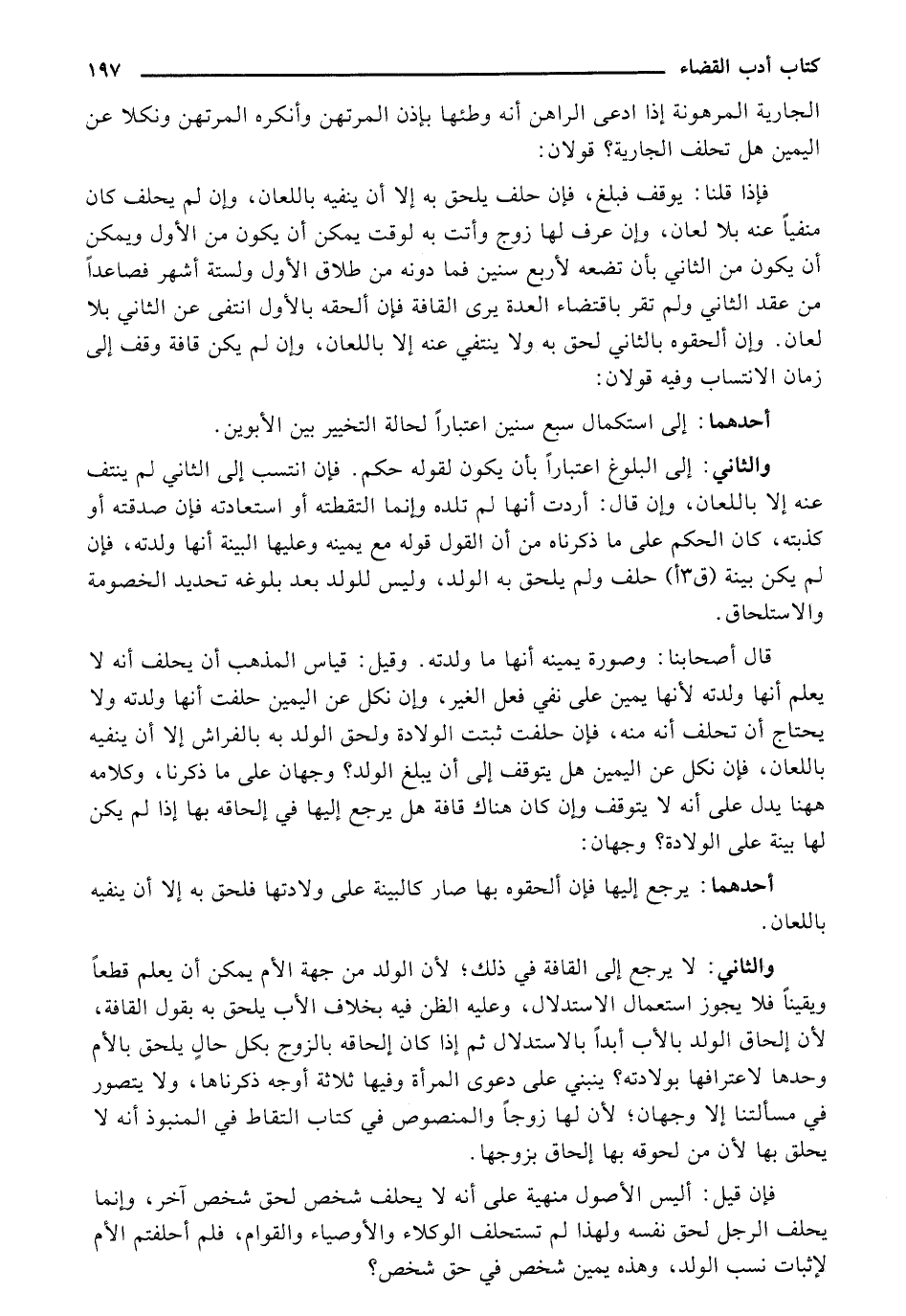 فإذا قلنا: يوقف فبلغ، فإن حلف يلحق به إلا أن ينفيه باللعان، وإن لم يحلف كان منفيًا عنه بلا لعان، وإن عرف لها زوج وأتت به لوقت يمكن أن يكون من الأول ويمكن أن يكون من الثاني بأن تضعه لأربع سنين فما دونه من طلاق الأول ولستة أشهر فصاعدًا من عقد الثاني ولم تقر باقتضاء العدة يرى القافة فإن ألحقه بالأول انتفي عن الثاني بلا لعان. وإن ألحقوه بالثاني لحق به ولا ينتفي عنه إلا باللعان، وإن لم يكن قافة وقف إلى زمان الانتساب وفيه قولان: