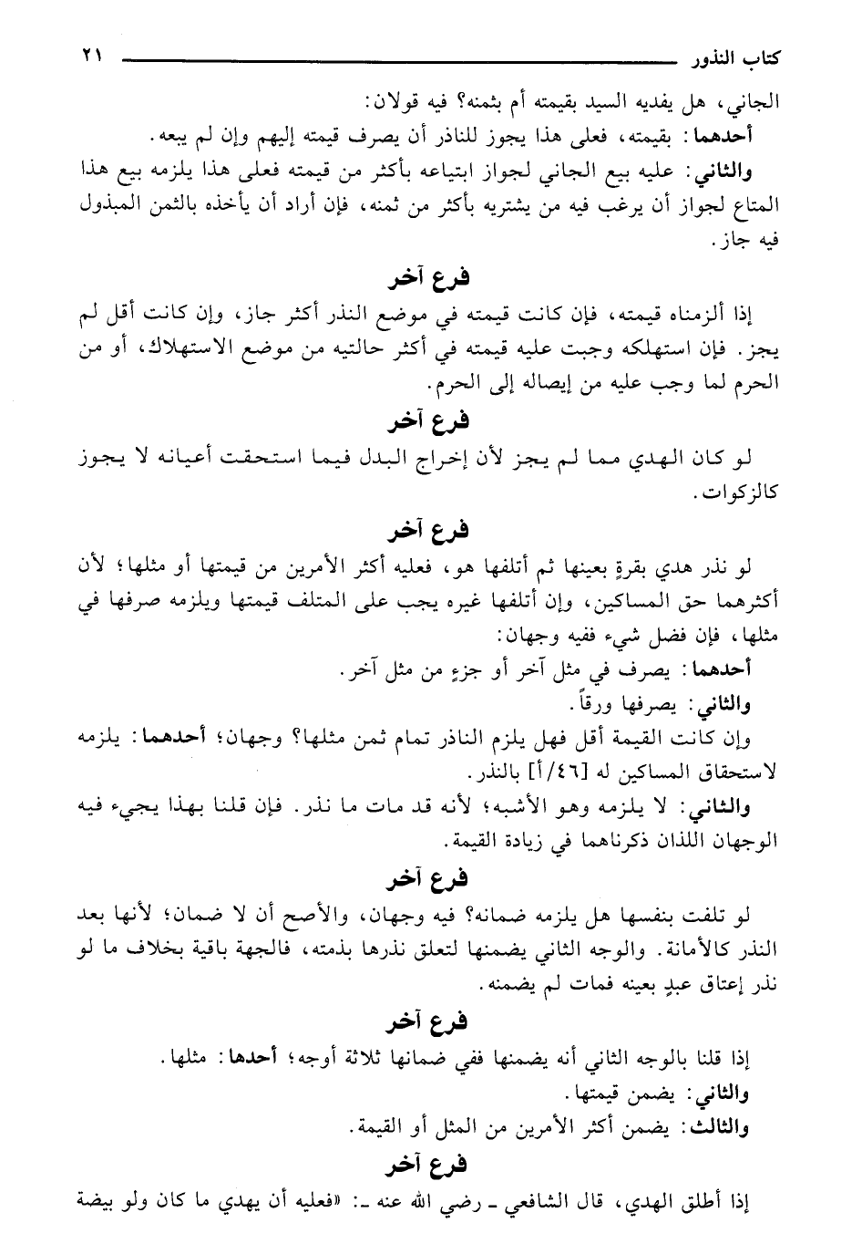 وإن كانت القيمة أقل فهل يلزم الناذر تمام ثمن مثلها؟ وجهان؛ أحدهما: يلزمه لاستحقاق المساكين له [46/ أ] بالنذر.