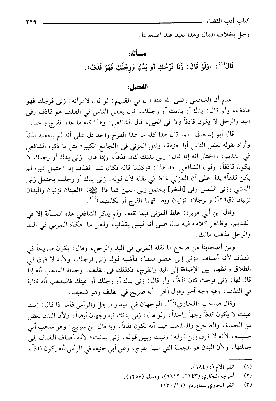 وقال ابن أبي هريرة: غلط المزني فيما نقله، ولم يذكر الشافعي هذه المسألة إلا في القديم، وظاهر كلامه فيه يدل على أنه ليس بقذف، ولعل ما حكاه المزني في اليد والرجل مذهب مالك.