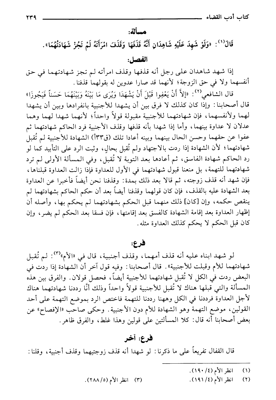 قال: "وَلَوْ شهِدَ عَليْه شَاهِدانِ أَنَّهُ قذَفها وقذف امْرأتهُ لمْ تَجزْ شَهَادَتُهُمَا".
