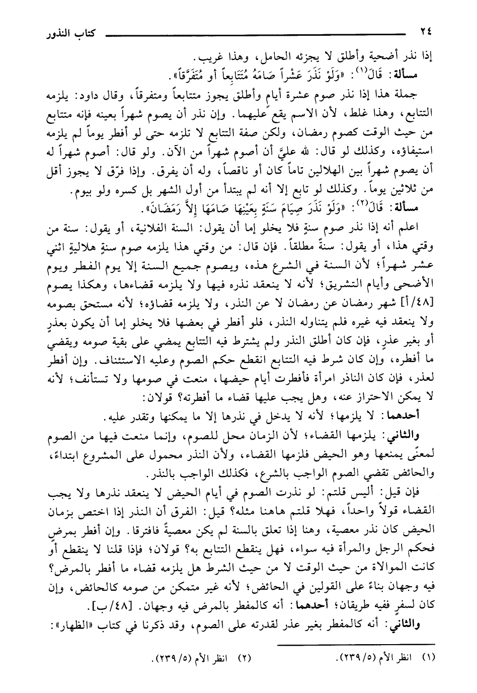 فإن قيل: أليس قلتم: لو نذرت الصوم في أيام الحيض لا ينعقد نذرها ولا يجب القضاء قولاً واحداً، فهلا قلتم هاهنا مثله؟ قيل: الفرق أن النذر إذا اختص بزمان الحيض كان نذر معصية، وهنا إذا تعلق بالسنة لم يكن معصيةً فافترقا. وإن أفطر بمرض فحكم الرجل والمرأة فيه سواء، فهل ينقطع التتابع به؟ قولان؛ فإذا قلنا لا ينقطع أو كانت الموالاة من حيث الوقت لا من حيث الشرط هل يلزمه قضاء ما أفطر بالمرض؟ فيه وجهان بناءً على القولين في الحائض؛ لأنه غير متمكن من صومه كالحائض، وإن كان لسفر ففيه طريقان؛ أحدهما: أنه كالمفطر بالمرض فيه وجهان. [48/ ب].