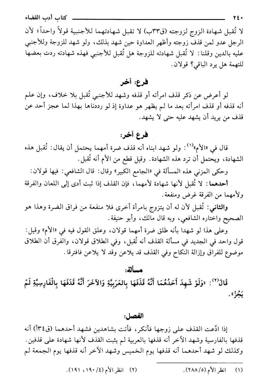 قال في " الأم": ولو شهد ابناه أنه قذف ضرة أمهما يحتمل أن يقال: تُقبل هذه الشهادة، ويحتم أن ترد هذه الشهادة. وقيل قطع من الأم أنه تُقبل.