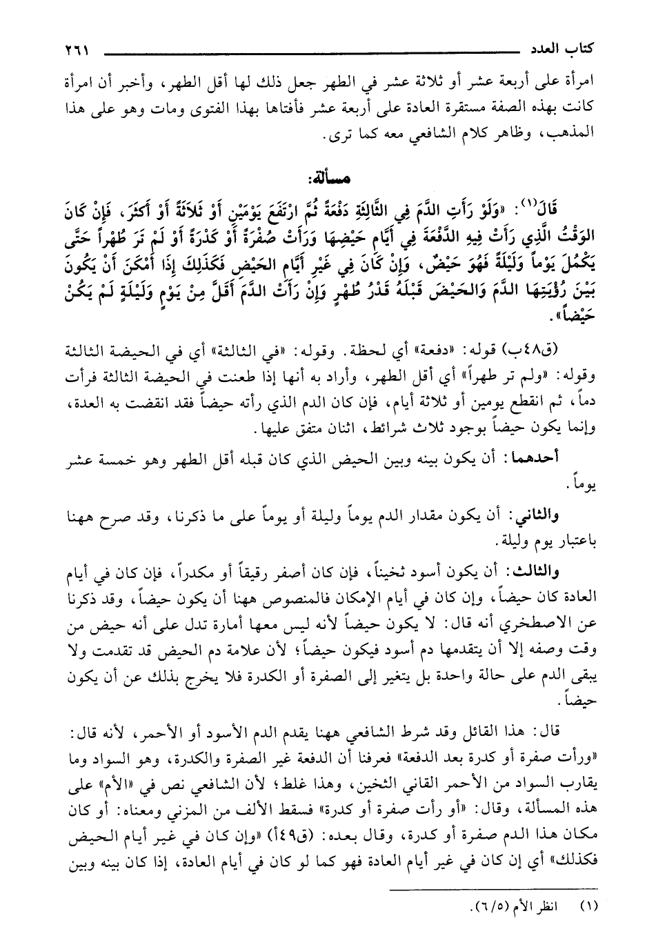 قال: هذا القائل وقد شرط الشافعي ههنا يقدم الدم الأسود أو الأحمر, لأنه قال: "ورأت صفرة أو كدرة بعد الدفعة" فعرفنا أن الدفعة غير الصفرة والكدرة, وهو السواد وما يقارب السواد من الأحمر القاني الثخين, وهذا غلط؛ لأن الشافعي نص في "الأم" على هذه المسألة, وقال: "أو رأت صفرة أو كدرة" فسقط الألف من المزني ومعناه: أو كان مكان هذا الدم صفرة أو كدرة, وقال بعده: [ق 49 أ] "وإن كان في أيام الحيض فكذلك" أي إن كان في غير أيام العادة فهو كما لو كان في أيام العادة, إذا كان بينه وبين