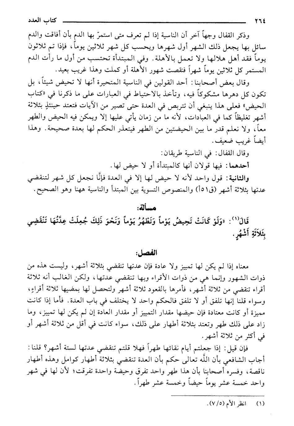 وقال بعض أصحابنا: أحد القولين في الناسية المتحيرة أنها لا تحيض شيئًا, بل تكون كل دهرها مشكوكًا فيه, وتأخذ بالاحتياط في العبارات على ما ذكرنا في "كتاب الحيض" فعلى هذا ينبغي أن تتربص في العدة حتى تصير من الآيات فتعتد حينئذٍ بثلاثة أشهر تغليظًا كما في العبادات, لأنه ما من زمان يأتي عليها إلا ويمكن فيه الحيض والطهر معًا, ولا نعلم قدر ما بين الحيضتين من الطهر فيعتذر الحكم لها بعدة صحيحة. وهذا أيضًا غريب ضعيف.