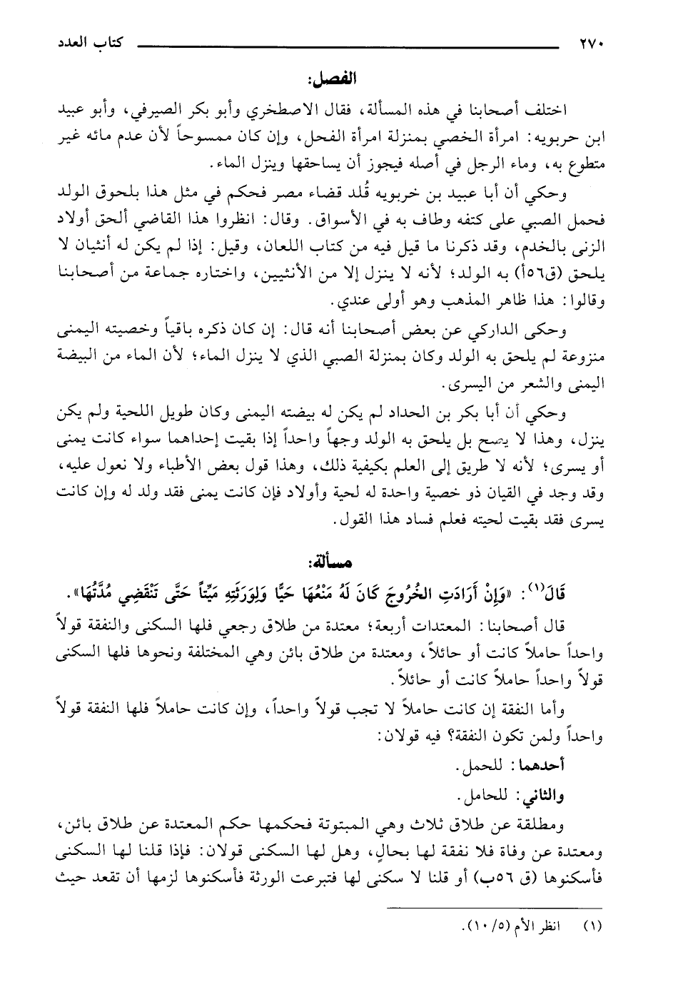 وأما النفقة إن كانت حاملًا لا تجب قولًا واحدًا, وغن كانت حاملًا فلها النفقة قولًا واحدًا ولمن تكون النفقة؟ فيه قولان: