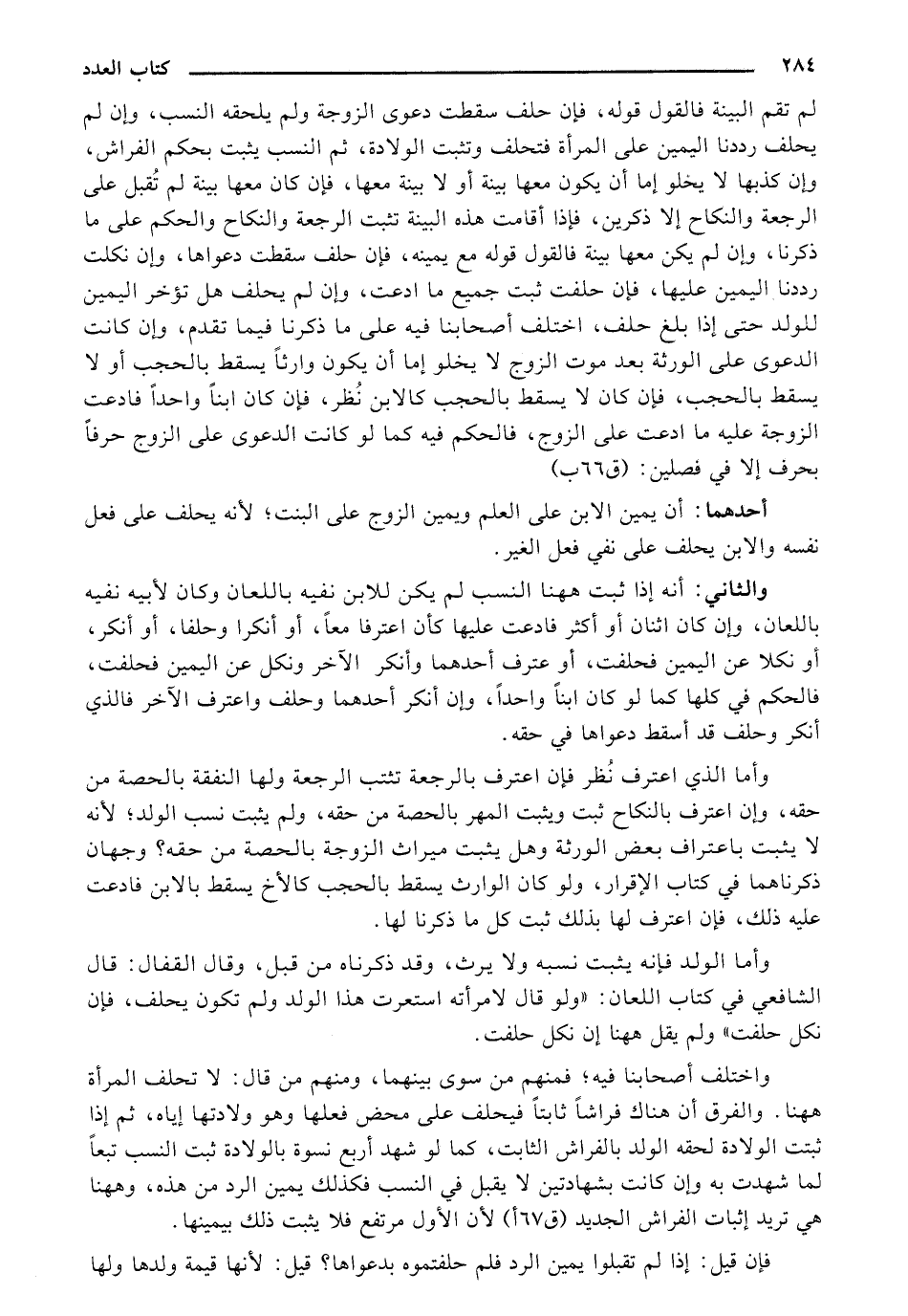 واختلف أصحابنا فيه؛ فمنهم من سوى بينهما، ومنهم من قال: لا تحلف المرأة ههنا. والفرق أن هناك فراشًا ثابتًا فيحلف على محض فعلها وهو ولادتها إياه، ثم إذا ثبتت الولادة لحقه الولد بالفراش الثابت، كما لو شهد أربع نسوة بالولادة ثبت النسب تبعًا لما شهدت به وإن كانت بشهادتين لا يقبل في النسب فكذلك يمين الرد من هذه، وههنا هي تريد إثبات الفراش الجديد [ق 67 أ] لأن الأول مرتفع فلا يثبت ذلك بيمينها.