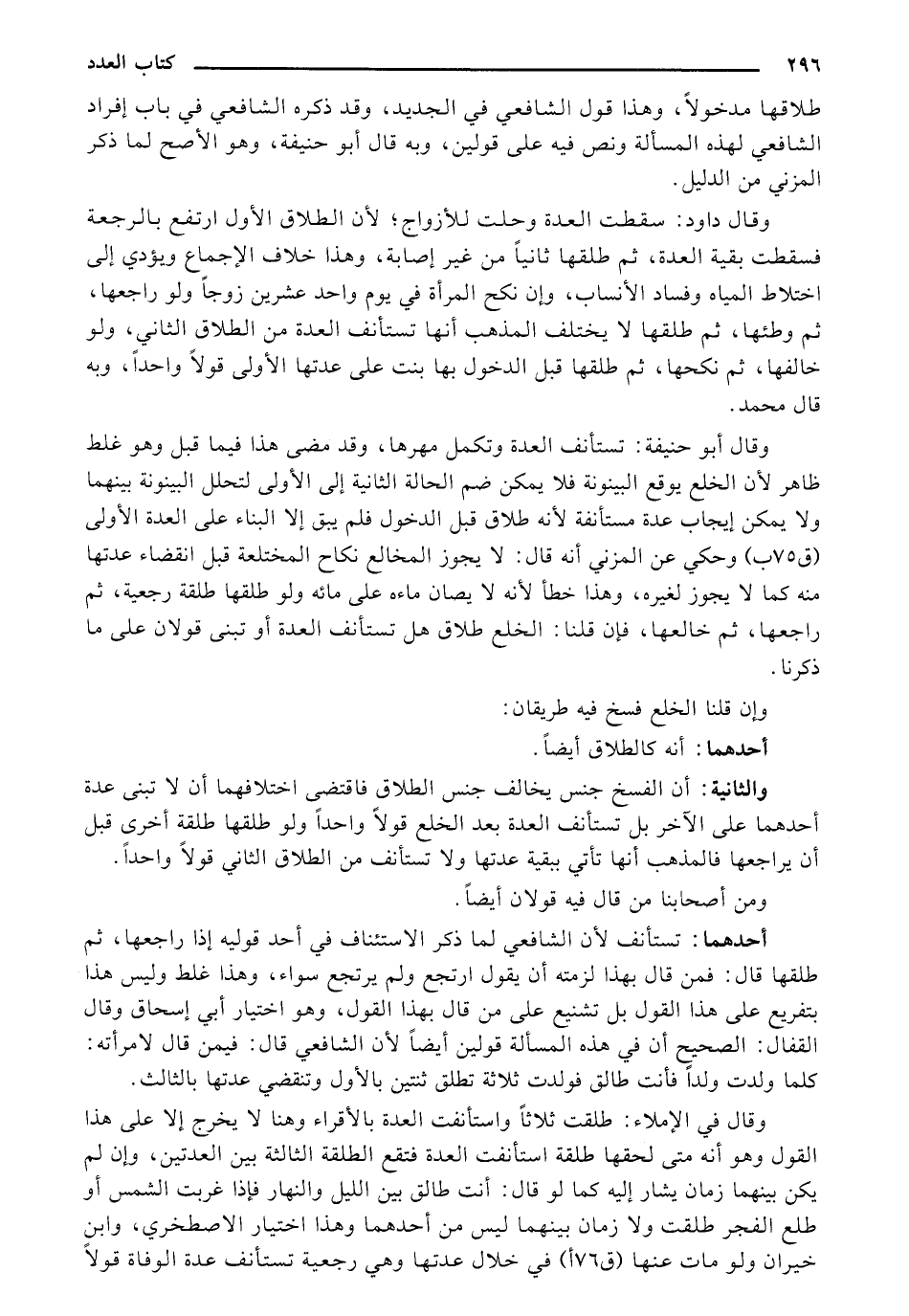 والثانية: أن الفسخ جنس يخالف جنس الطلاق فاقتضى اختلافهما أن لا تبنى عدة أحدهما على الآخر بل تستأنف العدة بعد الخلع قولاً واحدًا ولو طلقها طلقة أخرى قبل أن يراجعها فالمذهب أنها تأتي ببقية عدتها ولا تستأنف من الطلاق الثاني قولاً واحدًا.