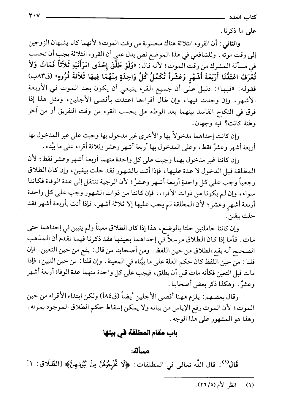 والثاني: أن القروء الثلاثة هناك محسوبة من وقت الموت؛ لأنهما كانا يشبهان الزوجين إلى وقت موته. وللشافعي في هذا الموضع نص يدل على أن القروء الثلاثة يجب أن تحسب في مسألة المشرك من وقت الموت؛ لأنه قال: {وَلَوْ طَلَّقَ إِحْدَى امْرَأَتَيْهِ ثَلَاثًا فَمَاتَ وَلَا تُعْرَفُ اعْتَدَّنَا أَرْبَعَةَ أَشْهُرٍ وَعَشْرًا تُكَمِّلُ كُلَّ وَاحِدَةٍ مِنْهُمَا فِيهَا ثَلَاثَةَ قُرُوءٍ} [ق 83 ب] فقوله: "فيها": دليل على أن جميع القرء ينبغي أن يكون بعد الموت في الأربعة الأشهر، وإن وجدت فيها، وإن طال أقراءها اعتدت بأقصى الأجلين، ومثل هذا إذا فرق في النكاح الفاسد بينهما بعد الوطء هل يحسب القرء من وقت التفريق أو من آخر وطئة كانت؟ فيه وجهان.