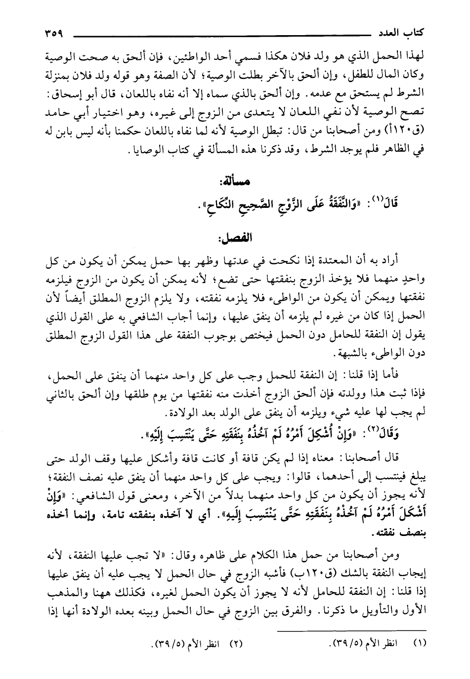 ومن أصحابنا من حم هذا الكلام علي ظاهرة وقال: " لا تحب عليها النفقة، لأنه إيجاب النفقة بالشك [ق 120 ب] فأشبه الزوج في حال الحمل لا يجب عليه أن ينفق عليها إذا قلنا: إن النفقة للحامل لأنه لا يجوز أن يكون الحمل لغيره، فكذلك ههنا والمذهب الأول والتأويل ما ذكرنا. والفرق بين الزوج في حال الجمل وبينه بعده الولادة أنها إذا