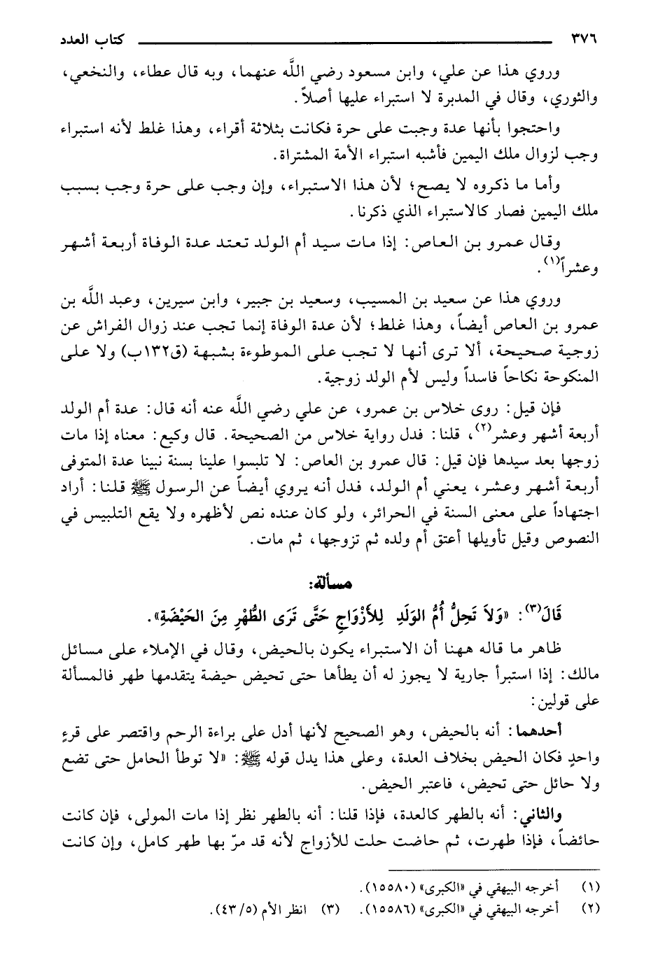 قَالَ: "وَلَا تَحِلُّ أَمُّ الوَلَدِ لِلأَزْوَاجِ حَتَّى تَرَى الطُّهْرِ مِنَ الحَيْضَةِ".