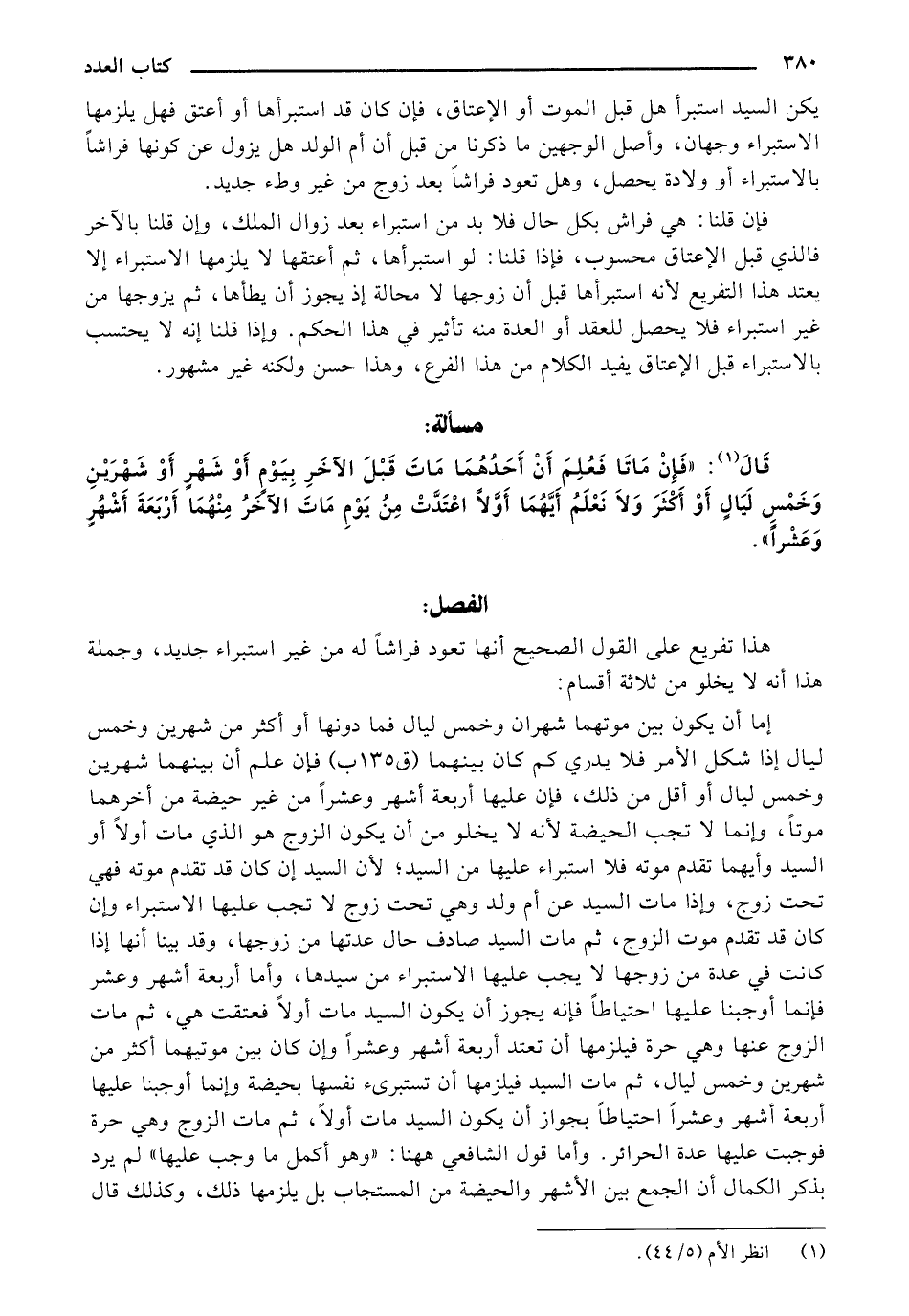 يكن السيد استبرأ هل قبل الموت أو الإعتاق، فإن كان قد استبرأها أو أعتق فهل يلزمها الاستبراء وجهان، وأصل الوجهين ما ذكرنا من قبل أن أم الولد هل يزول عن كونها فراشًا بالاستبراء أو ولادة يحصل، وهل تعود فراشًا بعد زوج من غير وطء جديد.