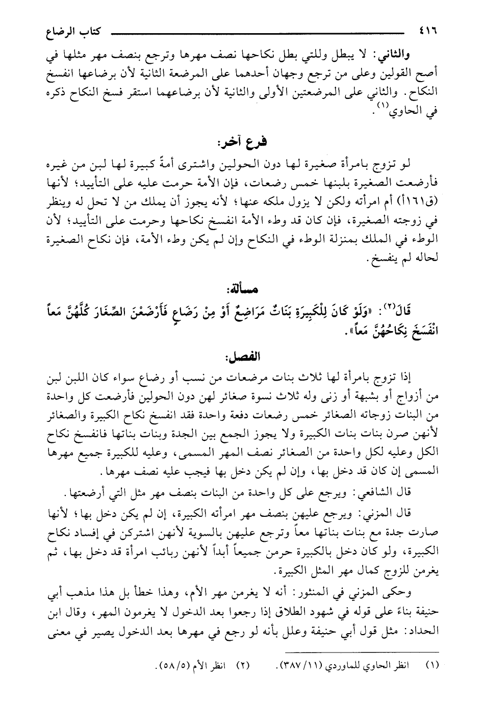 قال: "ولو كان للكبيرة بنات مراضع أو من رضاع فأرضعن الصغار كلهن معا انفسخ نكاحهن معا".
