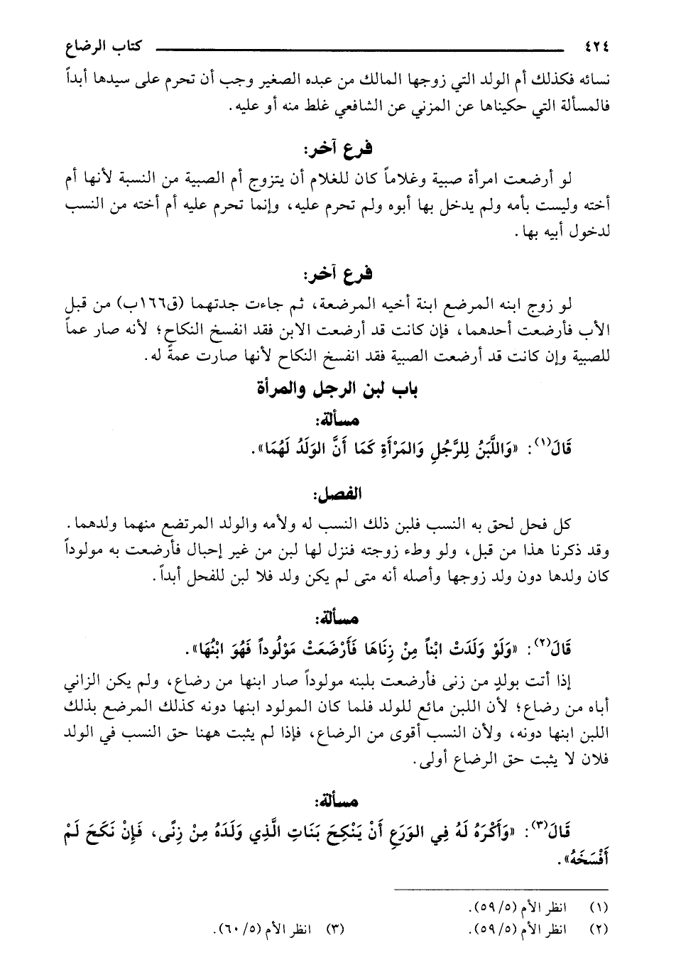 لو أرضعت امرأة صبية وغلاما كان للغلام أن يتزوج أم الصبية من النسبة لأنها أم أخته وليست بأمه ولم يدخل بها أبوه ولم تحرم عليه، وإنما تحرم عليه أم أخته من النسب لدخول أبيه بها.