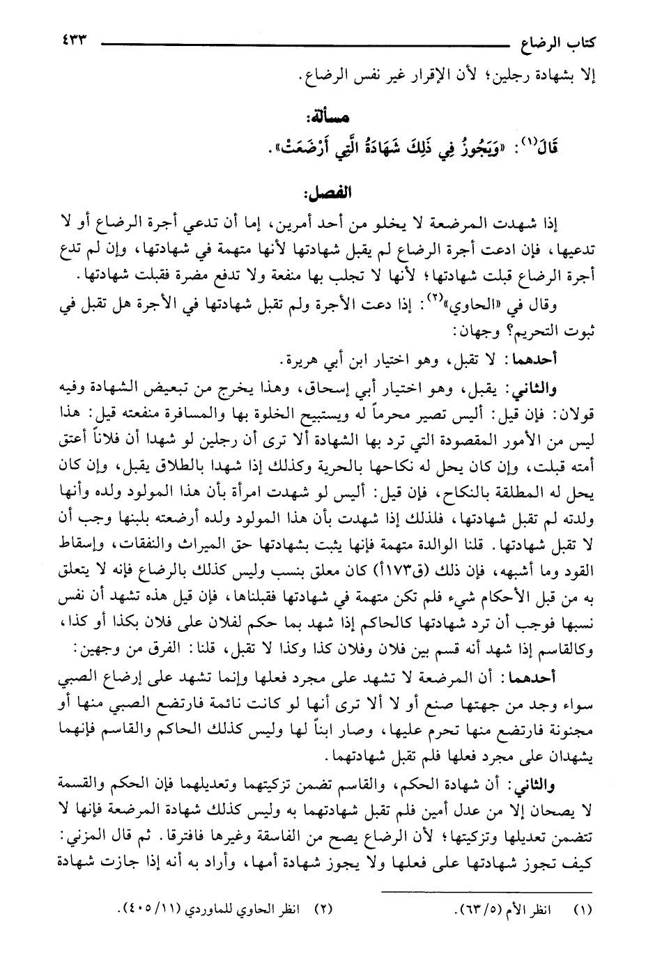والثاني: يقبل، وهو اختيار أبي إسحاق، وهذا يخرج من تبعيض الشهادة وفيه قولان: فإن قيل: أليس تصير محرماً له ويستبيح الخلوة بها والمسافرة منفعته قيل: هذا ليس من الأمور المقصودة التي ترد بها الشهادة الأ ترى أن رجلين لو شهدا أن فلاناً أعتق أمته قبلت، وإن كان يحل لخ نكاحها بالحرية وكذلك إذا شهدا بالطلاق يقبل، وإن كان يحل له المطلقة بالنكاح، فإن قيل: أليس لو شهدت امرأة بأن هذا المولود ولده وأنها ولدته لم تقبل شهادتها، فلذلك إذا شهدت بأن هذا المولود ولده أرضعته بلبنها وجب أن لا تقبل شهادتها. قلنا الوالدة متهمة فإنها يثبت بشهادتها حق الميراث والنفقات، وإسقاط القود وما أشبهه، فإن ذلك [ق 173 أ] كان معلق بنسب وليس كذلك بالرضاع فإنه لا يتعلق به من قبل الأحكام شيء فلم تكن متهمة في شهادتها فقبلناها، فإن قيل هذه تشهد أن نفس نسبها فوجب أن ترد شهادتها كالحاكم إذا شهد بما حكم لفلان على فلان بكذا أو كذا، وكالقاسم إذا شهد أنه قسم بين فلان وفلان كذا وكذا لا تقبل، قلنا: الفرق من وجهين: