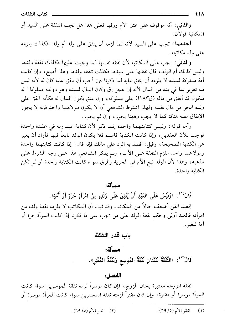 قَالَ: "النَّفَقَةُ نَفَقَتَانِ نَفَقَةُ المُوسِعِ وَنَفَقَةُ المُقْتِرِ".