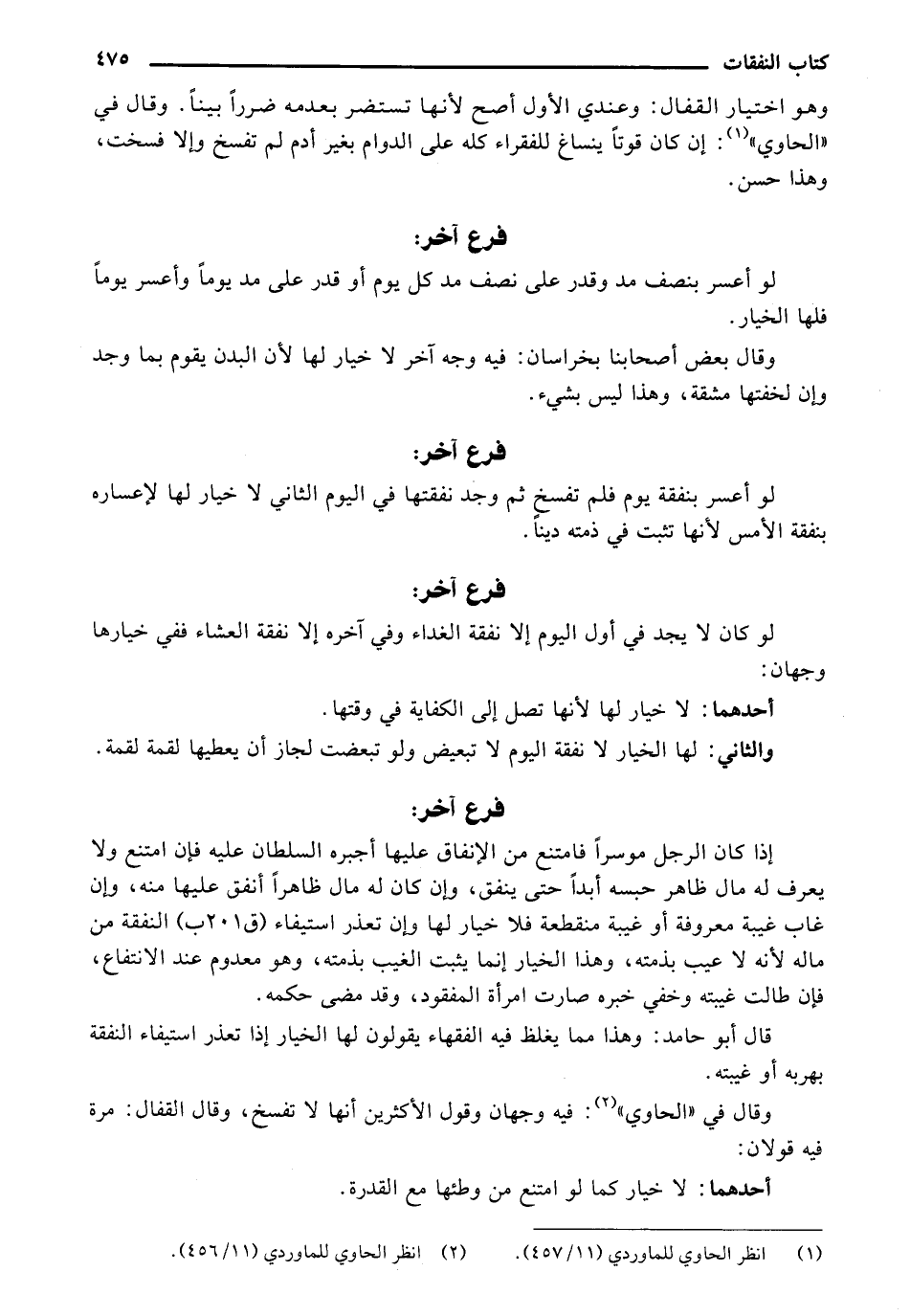 وهو اختيار القفال: وعندي الأول أصح لأنها تستصغر بعدمه ضررًا بينًا. وقال في "الحاوي": إن كان قوتًا ينساغ للفقراء كله على الدوام بغير أدم لم تفسخ وإلا فسخت، وهذا حسن.