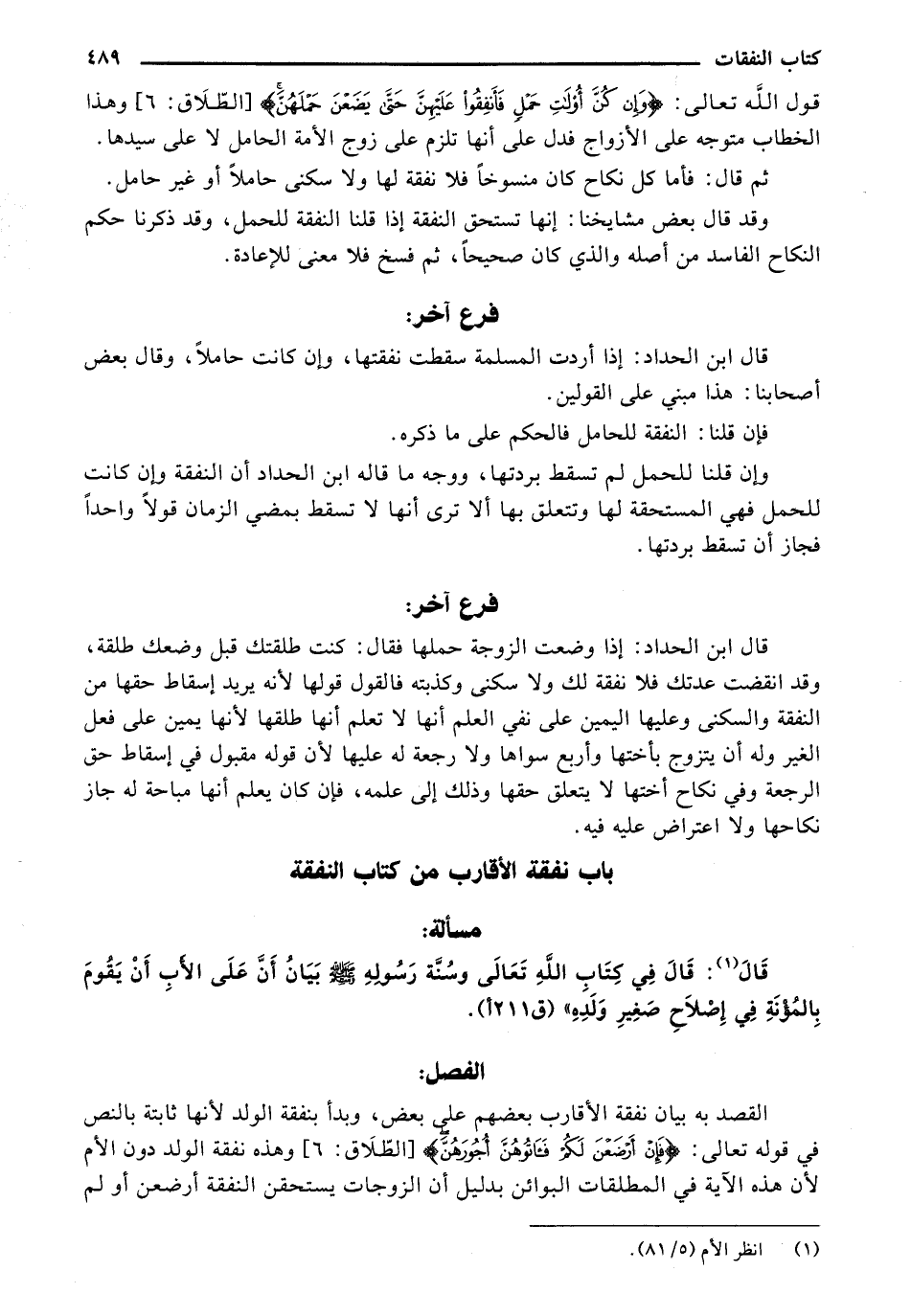 قَالَ: قَالَ فِي كِتَابِ اللهِ تَعَالَى وسُنَّة رَسُولِهِ صلى الله عليه وسلم بَيَانُ أَنَّ عَلَى الأَبِ أَنْ يَقُومَ بِالمُؤْنَةِ فِي إِصْلَاحِ صَغِيرِ وَلَدِهِ" [ق 211 أ].