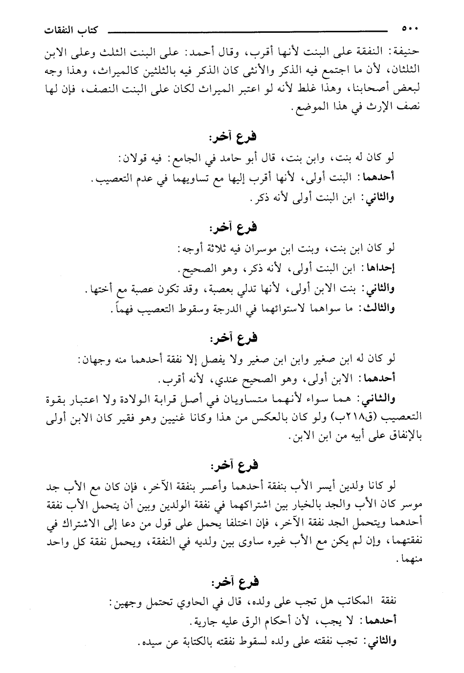 والثاني: هما سواء لأنهما متساويان في أصل قرابة الولادة ولا اعتبار بقوة التعصيب [ق 218 ب] ولو كان بالعكس من هذا وكانا غنيين وهو فقير كان الابن أولى بالإنفاق على أبيه من ابن الابن.