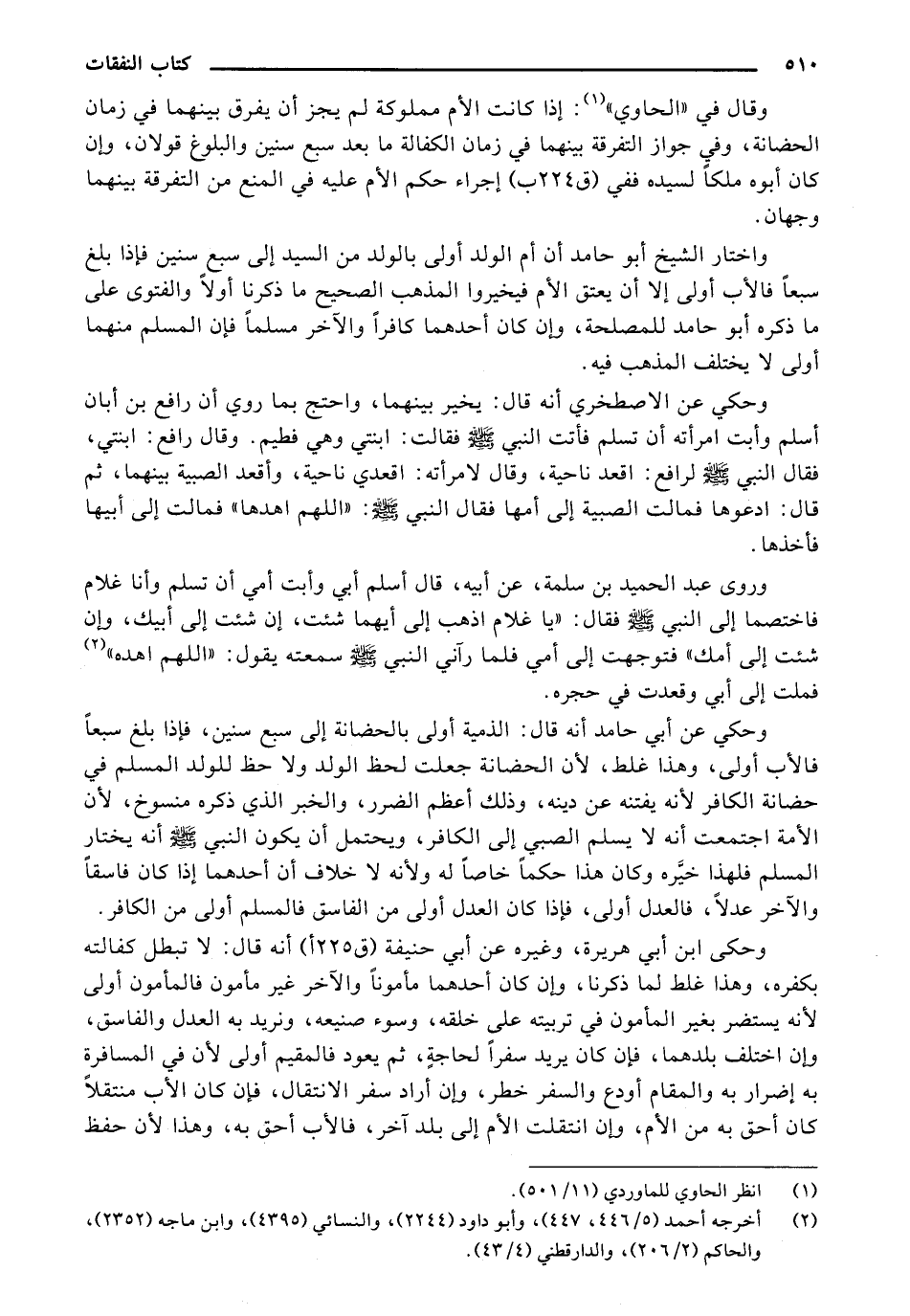 وحكي عن أبي حامد أنه قال: الذمية أولى بالحضانة إلى سبع سنين، فإذا بلغ سبعاً فالأب أولى وهذا غلط، لأن الحضانة جعلت لحظ الولد ولا حظ للولد المسلم في حضانة الكافر لأنه يفتنه عن دينه، وذلك أعظم الضرر، والخبر الذي ذكره منسوخ، لأن الأمة اجتمعت أنه لا يسلم الصبي إلى الكافر، ويحتمل أن يكون النبي صلى الله عليه وسلم أنه يختار المسلم فلهذا خيره وكان هذا حكماً خاصاً له ولأنه لا خلاف أن أحدهما إذا كان فاسقاً والآخر عدلاً، فالعدل أولى، فإذا كان العدل أولى من الفاسق فالمسلم أولى من الكافر.