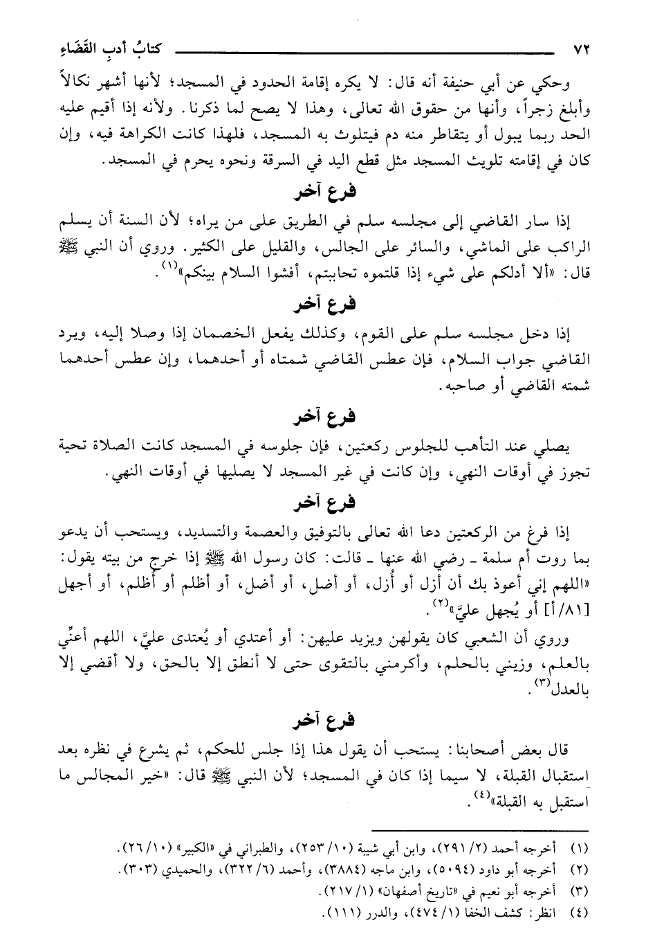 قال بعض أصحابنا: يستحب أن يقول هذا إذا جلس للحكم، ثم يشرع في نظره بعد استقبال القبلة، لا سيما إذا كان في المسجد؛ لأن النبي صلى الله عليه وسلم قال: "خير المجالس ما استقبل به القبلة".