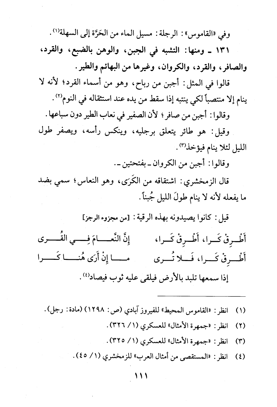 131 - ومنها: التشبه في الجبن، والوهن بالضبع، والقرد، والصافر، والقرد، والكروان، وغيرها من البهائم والطير.