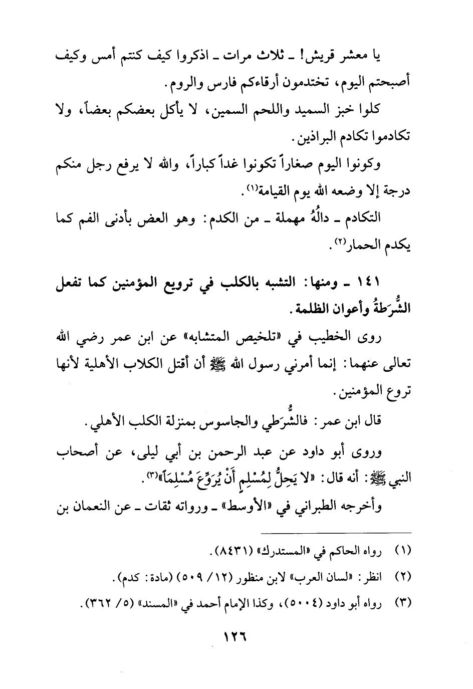 141 - ومنها: التشبه بالكلب في ترويع المؤمنين كما تفعل الشُّرَطةُ وأعوان الظلمة.