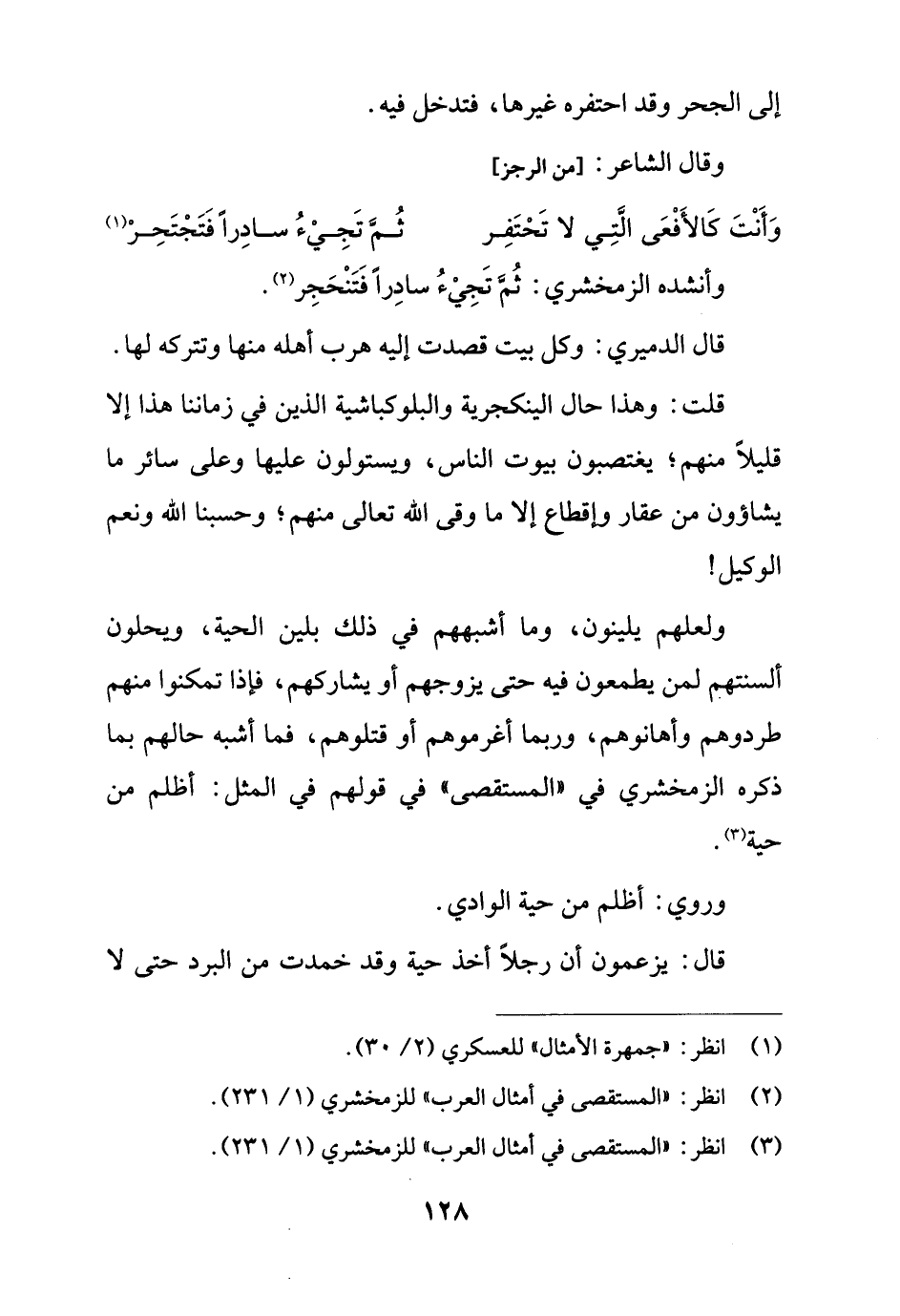 وَأَنْتَ كَالأَفْعَى الَّتِي لا تَحْتَفِر ... ثُمَّ تَجِيْءُ سادِراً فَتَجْتَحِرْ (¬1)