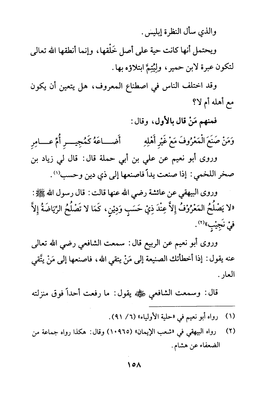 وروى أبو نعيم عن الربيع قال: سمعت الشافعي رضي الله تعالى عنه يقول: إذا أخطأتك الصنيعة إلى مَنْ يتقي الله، فاصنعها إلى مَنْ يتَّقي العار.