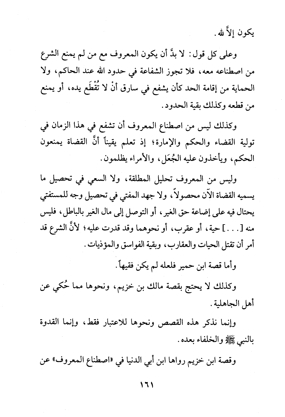 وكذلك ليس من اصطناع المعروف أن تشفع في هذا الزمان في تولية القضاء والحكم والإمارة؛ إذ تعلم يقيناً أنَّ القضاة يمنعون الحكم، ويأخذون عليه الجُعَل، والأمراء يظلمون.