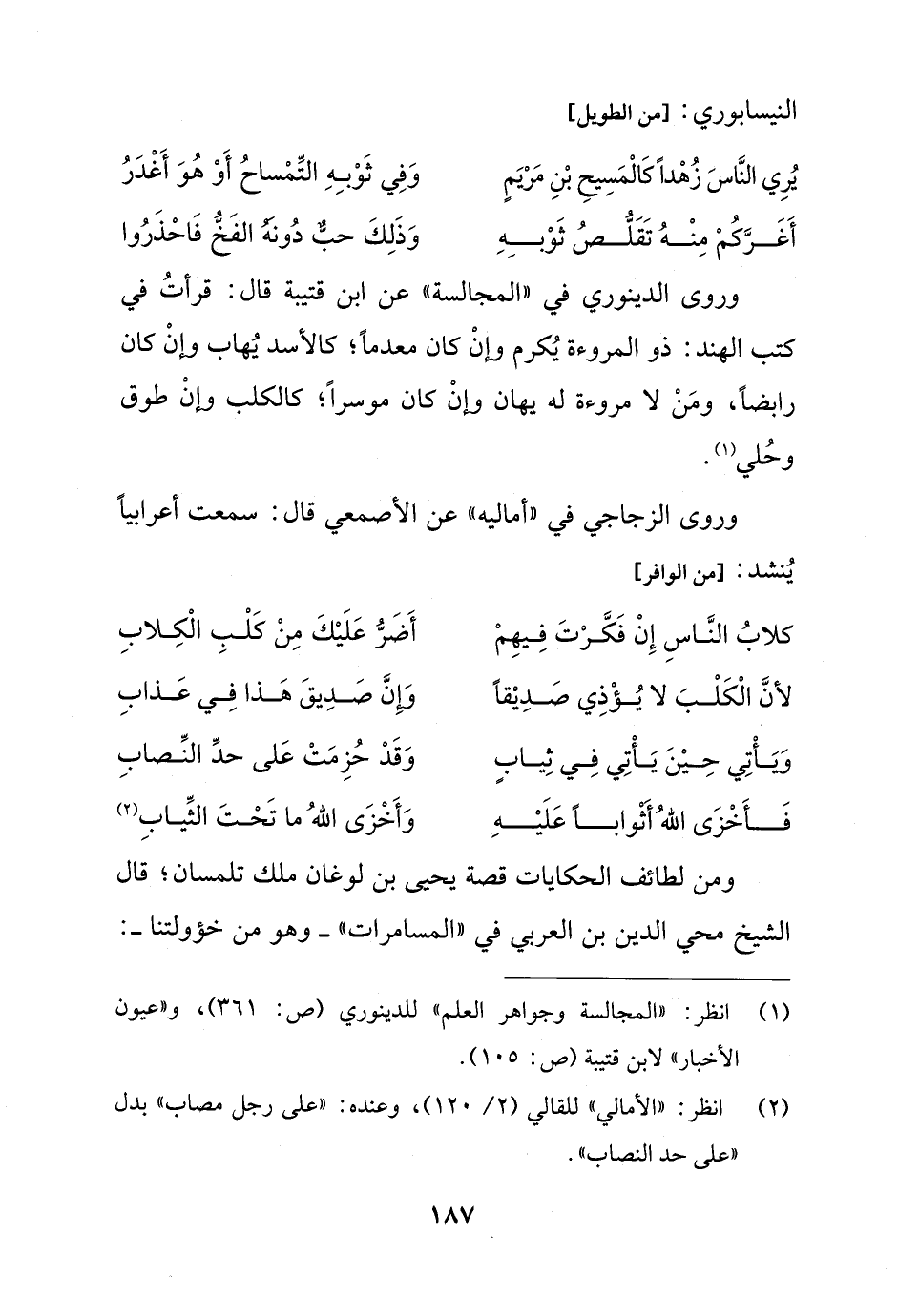 (¬1) انظر: "المجالسة وجواهر العلم" للدينوري (ص: 361)، و"عيون الأخبار" لابن قتيبة (ص: 105).