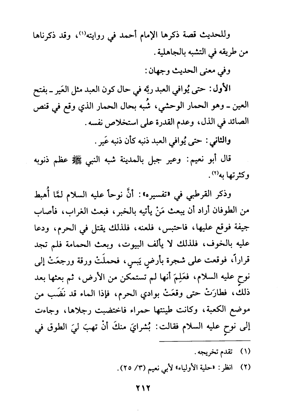 الأول: حتى يُوافي العبد ربه في حال كون العبد مثل العَير - بفتح العين - وهو الحمار الوحشي، شُبه بحال الحمار الذي وقع في قنص الصائد في الذل، وعدم القدرة على استخلاص نفسه.