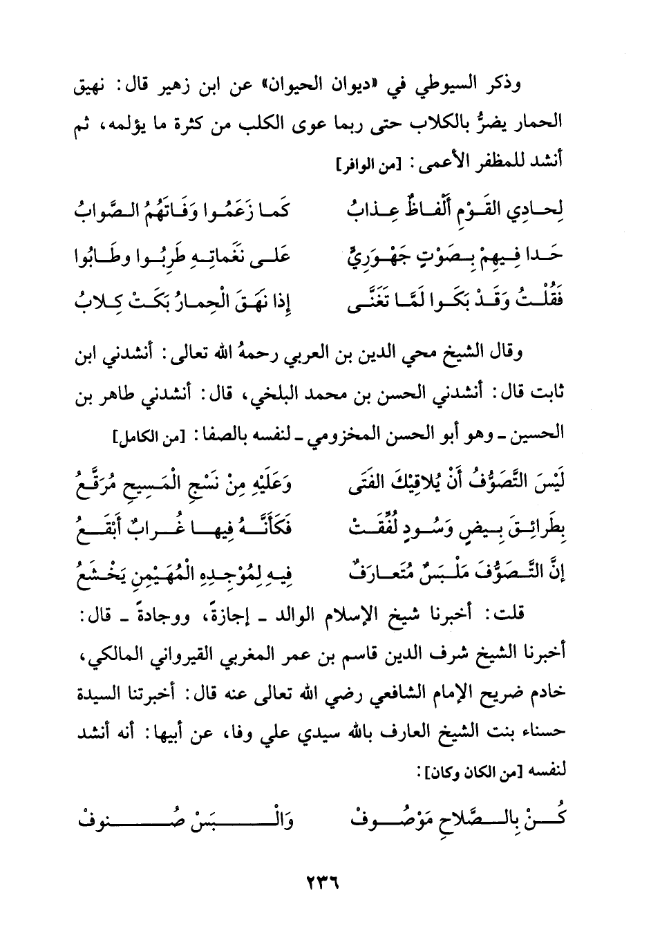 إنَّ التَّصَوُّفَ مَلْبَسٌ مُتَعارَفٌ ... فِيهِ لِمُوْجِدِهِ الْمُهَيْمِنِ يَخْشَعُ