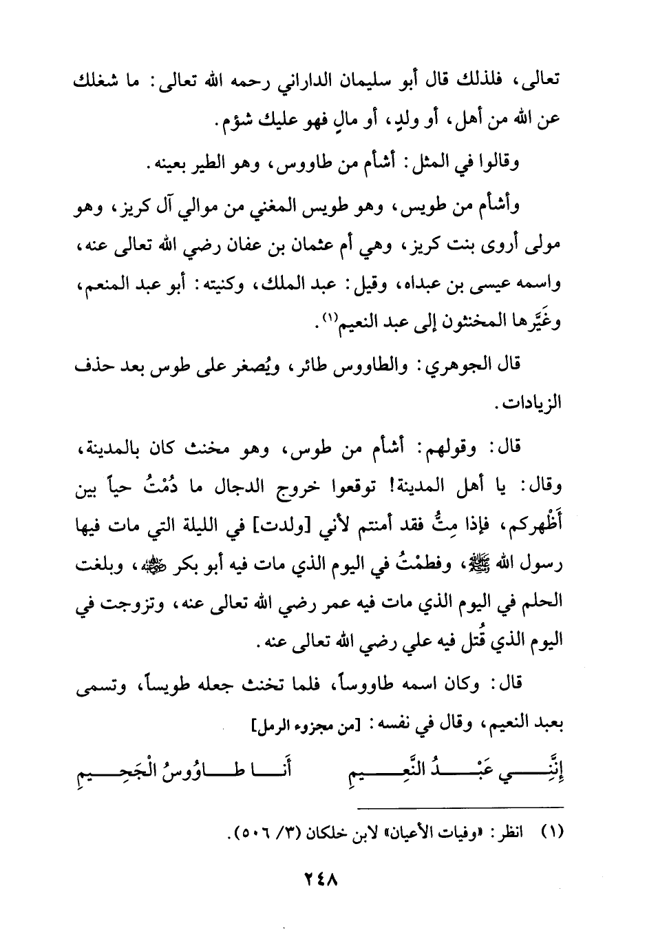قال: وكان اسمه طاووسا، فلما تخنث جعله طويساً، وتسمى بعبد النعيم، وقال في نفسه: [من مجزوء الرمل]