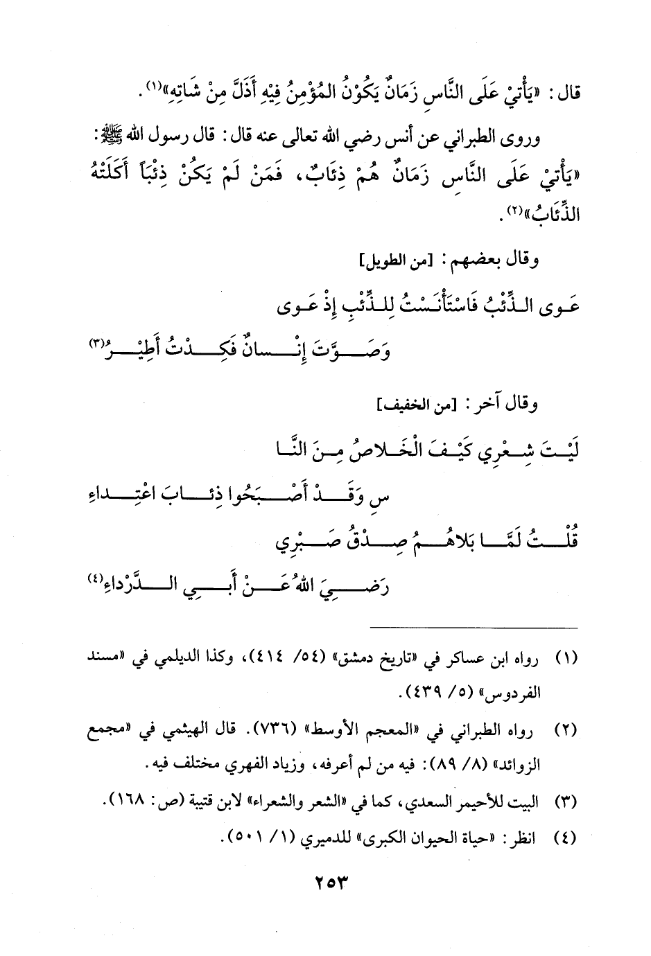 قُلْتُ لَمَّا بَلاهُمُ صِدْقُ صَبْرِي ... رَضِيَ اللهُ عَنْ أَبِي الدَّرْداءِ (¬4)