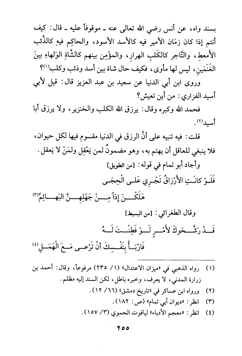 فَلَوْ كانَتِ الأَرْزاقُ تَجْرِي عَلى الْحِجَى ... هَلَكْنَ إِذاً مِنْ جَهْلِهِنَّ البَهائِمُ" (¬3)