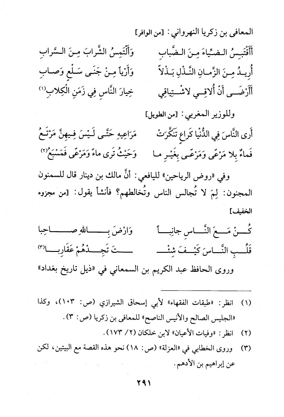 (¬1) انظر: "طبقات الفقهاء" لأبي إسحاق الشيرازي (ص: 103)، وكذا "الجليس الصالح والأنيس الناصح" للمعافى بن زكريا (ص: 3).