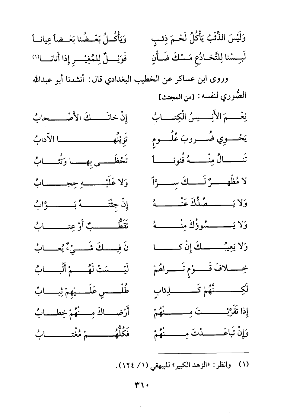 نِعْمَ الأَنِيسُ الْكِتابُ ... إِنْ خانَكَ الأَصْحابُ