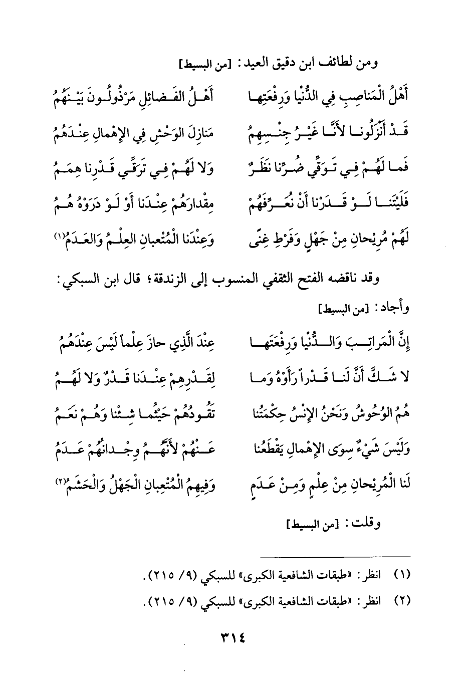 ومن لطائف ابن دقيق العيد: [من البسيط]