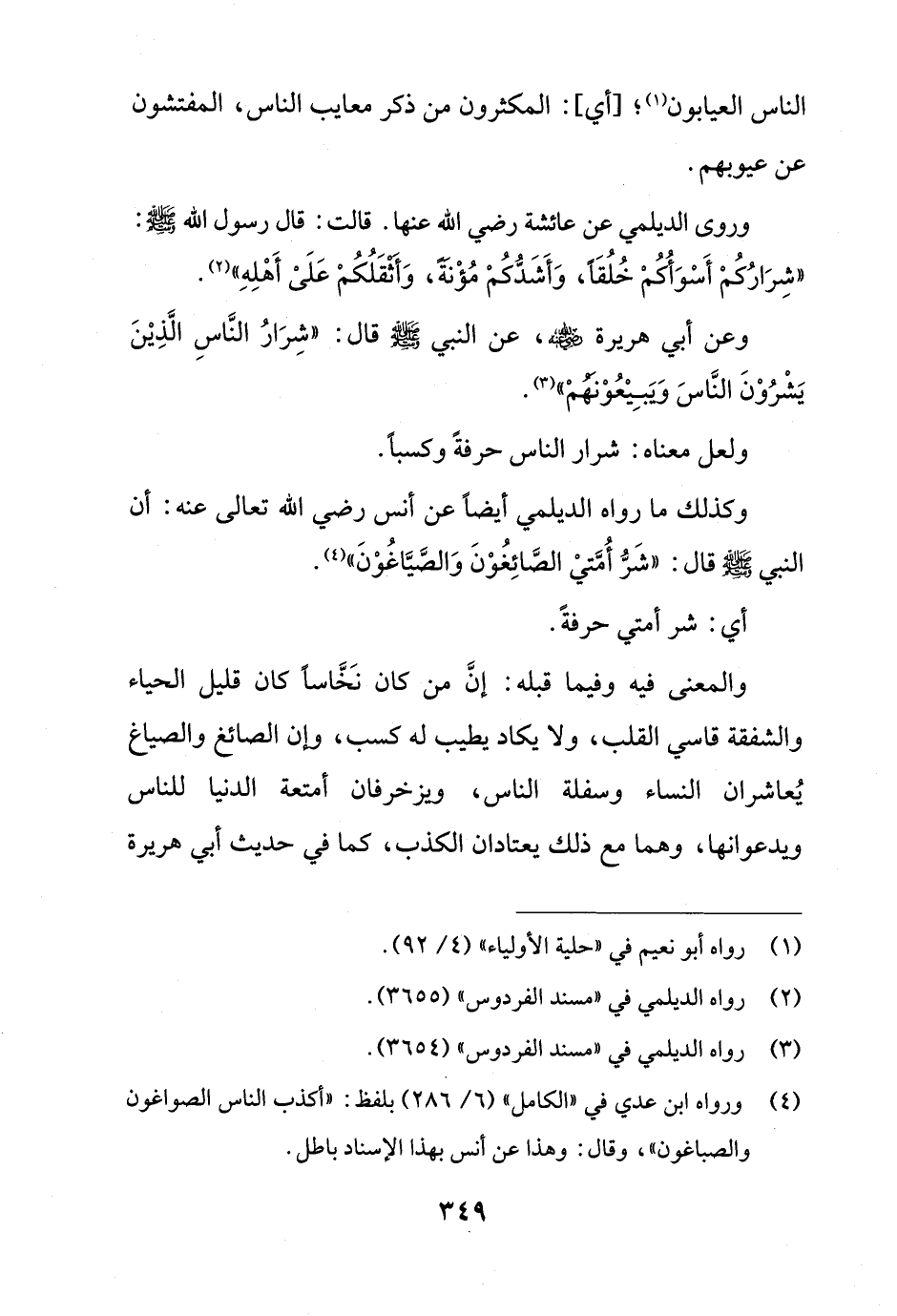 وكذلك ما رواه الديلمي أيضًا عن أنس رضي الله تعالى عنه: أن النبي - صلى الله عليه وسلم - قال: "شَرُّ أُمَّتيْ الصَّائِغُوْنَ وَالصَّيَّاغُوْنَ" (¬4).