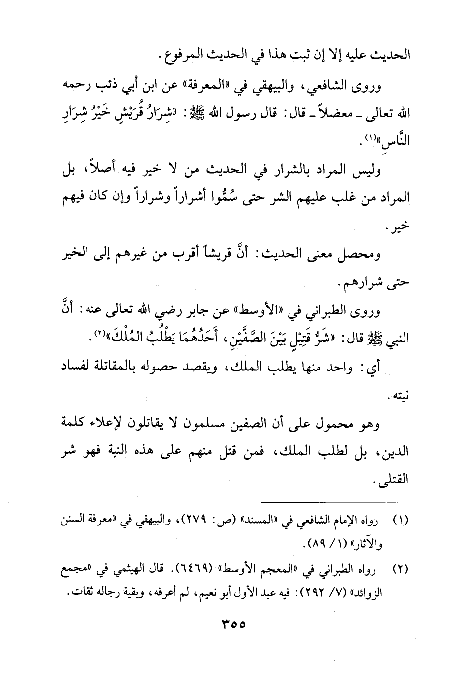 وروى الشافعي، والبيهقي في "المعرفة" عن ابن أبي ذئب رحمه الله تعالى -معضلًا - قال: قال رسول الله - صلى الله عليه وسلم -: "شِرَارُ قُرَيْشٍ خَيْرُ شِرَارِ النَّاسِ" (¬1).