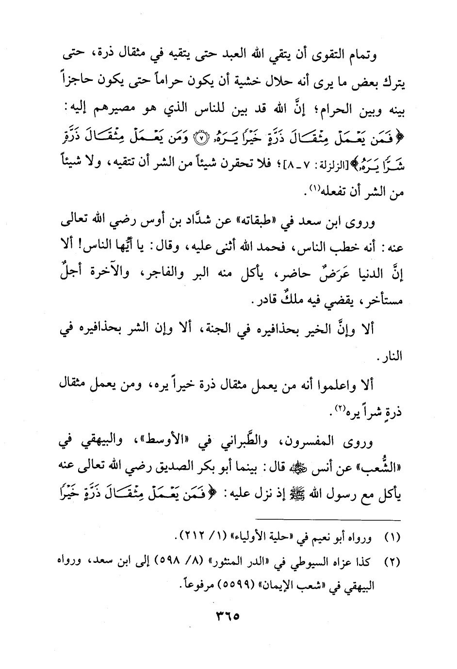 ألا واعلموا أنه من يعمل مثقال ذرة خيراً يره، ومن يعمل مثقال ذرة شراً يره (¬2).