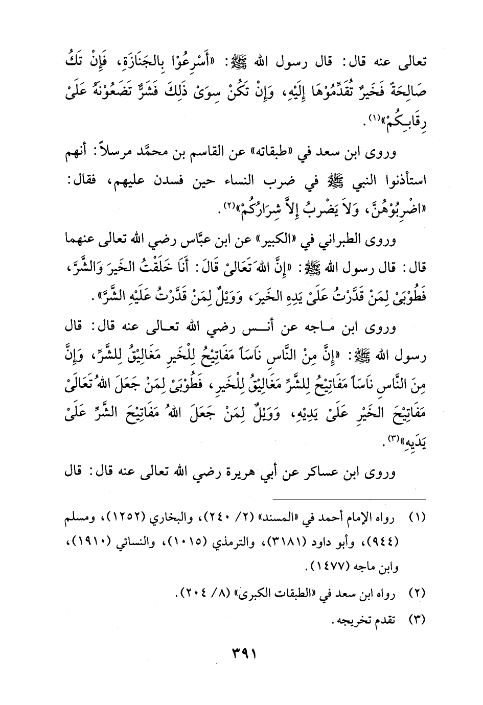وروى ابن ماجه عن أنس رضي الله تعالى عنه قال: قال رسول الله -صلى الله عليه وسلم-: "إِنَّ مِنْ النَّاسِ نَاسًا مَفَاتِيْحُ لِلْخَيرِ مَغَالِيْقُ لِلشَّرِّ، وَإِنَّ مِنَ النَّاسِ نَاسًا مَفَاتِيْحُ لِلشَّرِّ مَغَالِيْقُ لِلْخَيرِ، فَطُوْبَىْ لِمَنْ جَعَلَ اللهُ تَعَالَىْ مَفَاتِيْحَ الخَيْرِ عَلَىْ يَدِيْهِ، وَوَيْلٌ لِمَنْ جَعَلَ اللهُ مَفَاتِيْحَ الشَّرِّ عَلَىْ يَدَيِهِ" (¬3).