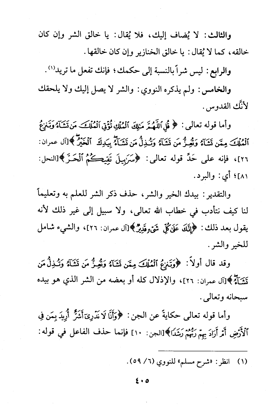 والرابع: ليس شراً بالنسبة إلى حكمك؛ فإنك تفعل ما تريد (¬1).