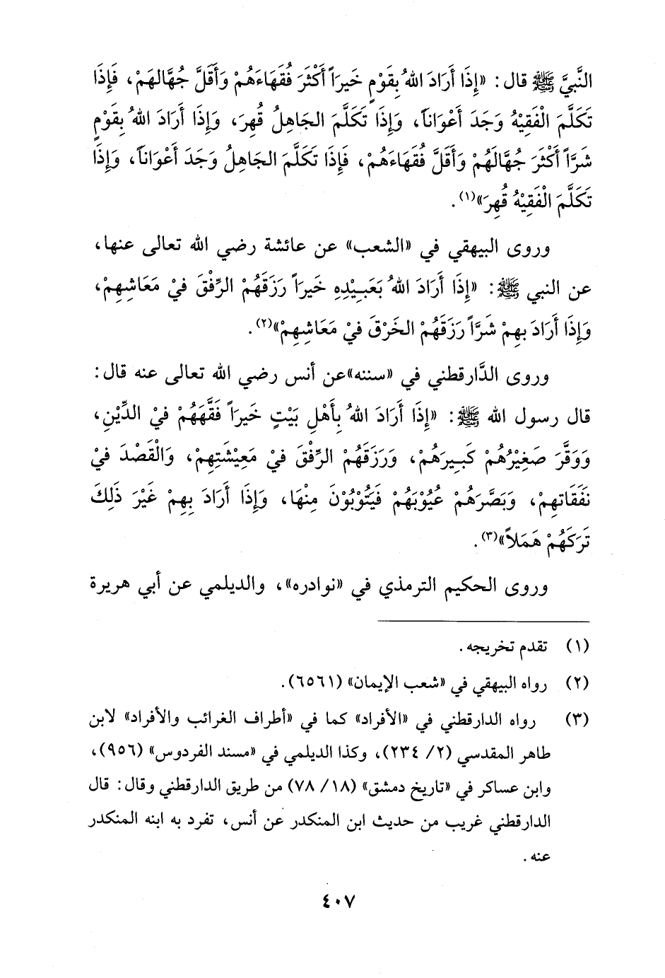 النَبيَّ -صلى الله عليه وسلم- قال: "إِذَا أَرَادَ اللهُ بِقَوْمٍ خَيرًا أَكْثَرَ فُقَهَاءَهُمْ وَأَقَلَّ جُهَّالهَمْ، فَإِذَا تَكَلَّمَ الْفَقِيْهُ وَجَدَ أَعْوَاناً، وَإِذَا تَكَلَّمَ الجَاهِلُ قُهِرَ، وَإِذَا أَرَادَ اللهُ بِقَوْمٍ شَرًّا أَكْثَرَ جُهَّالَهُمْ وَأَقَلَّ فُقَهَاءَهُمْ، فَإِذَا تَكَلَّمَ الجَاهِلُ وَجَدَ أَعْوَاناً، وَإِذَا تَكَلَّمَ الْفَقِيْهُ قُهِرَ" (¬1).
