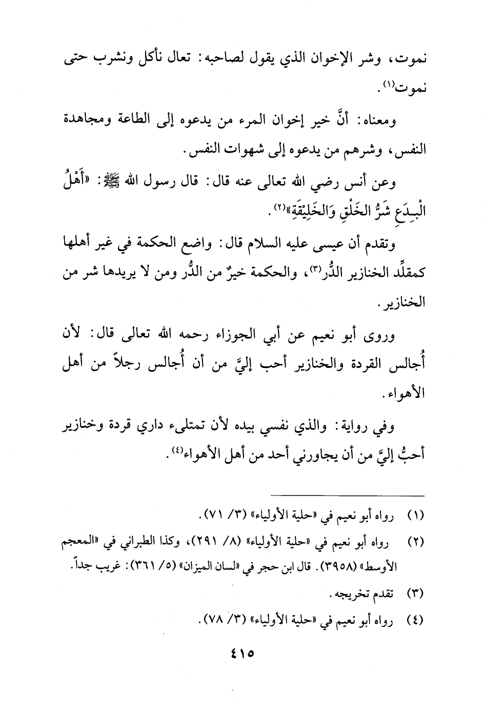 وروى أبو نعيم عن أبي الجوزاء رحمه الله تعالى قال: لأن أُجالس القردة والخنازير أحب إليَّ من أن أُجالس رجلاً من أهل الأهواء.