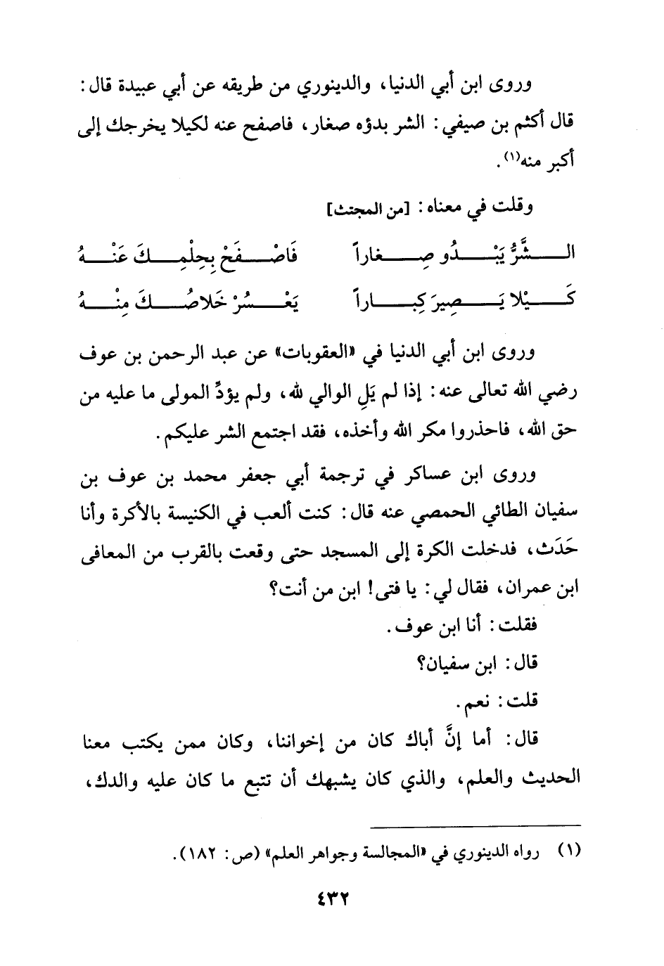 (¬1) رواه الدينوري في "المجالسة وجواهر العلم" (ص: 182).