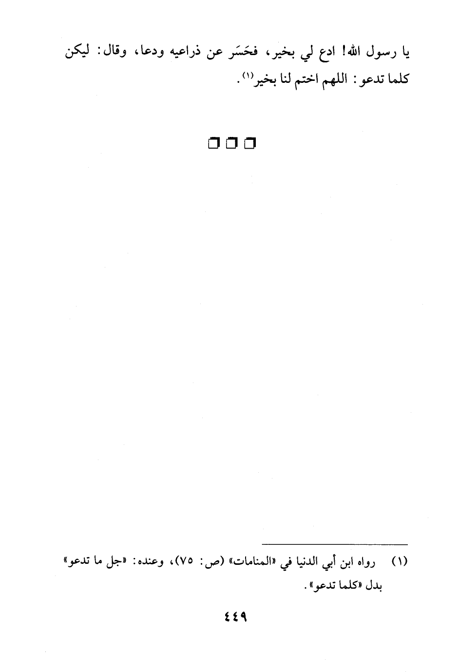(¬1) رواه ابن أبي الدنيا في "المنامات" (ص: 75)، وعنده: "جل ما تدعو" بدل "كلما تدعو".