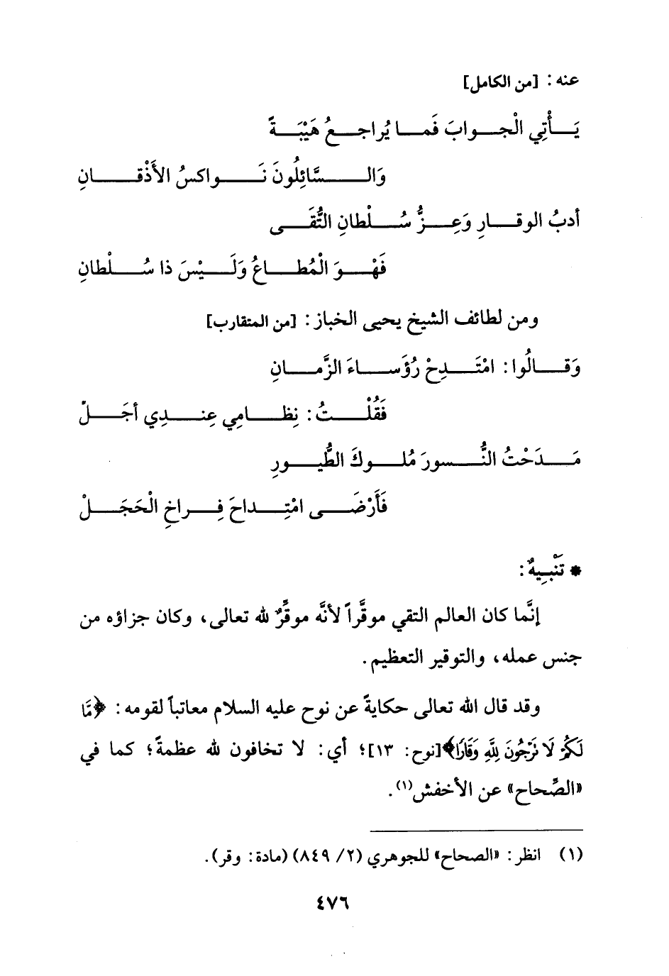 (¬1) انظر: "الصحاح" للجوهري (2/ 849) (مادة: وقر).