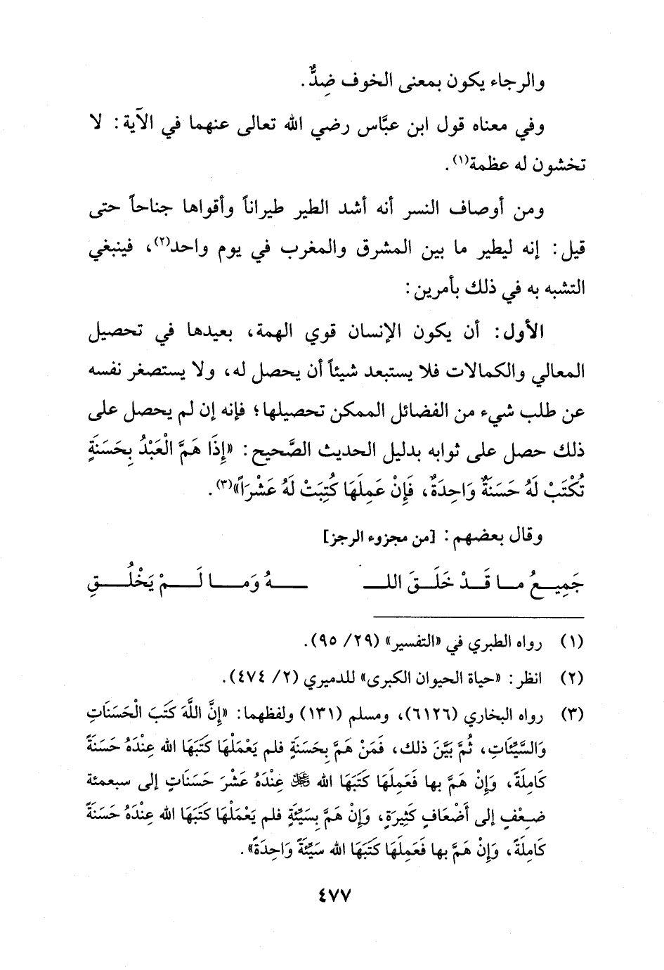 ومن أوصاف النسر أنه أشد الطير طيراناً وأقواها جناحاً حتى قيل: إنه ليطير ما بين المشرق والمغرب في يوم واحد (¬2)، فينبغي التشبه به في ذلك بأمرين: